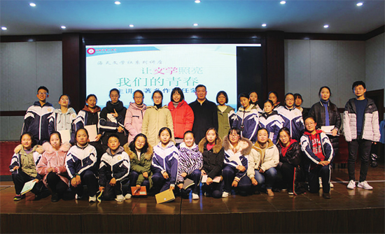 接下来,我把名人请进校园开讲座,组织社员采风,撷取写作灵感,定期培训,让他们聚在一起探讨写作,面对面交流……海天文学社成了学校里学生最为向往的社团之一。