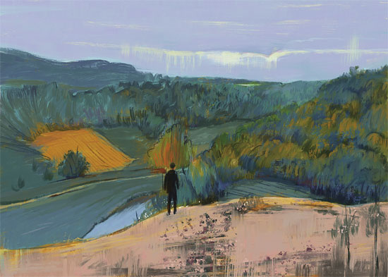 他有时低头寻找垃圾,有时整理那些阻碍行走的树枝,有时将路上容易将人绊倒的大块石头扔到树丛里,有时将倾斜的指路标牌摆好固定。