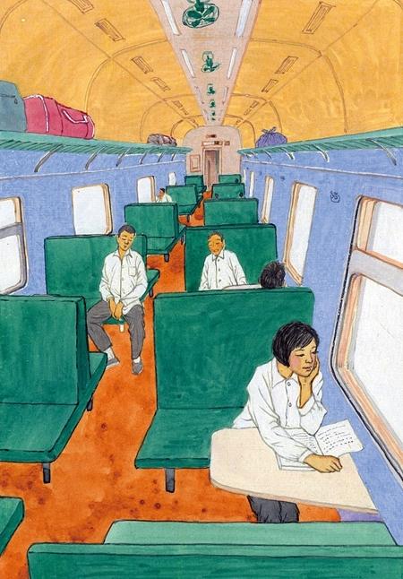 清晨的“慢车”与黄昏的“慢车”迥然不同。清晨,车厢里挤满了巨大的背篓、麻袋和提篮,透过其上遮盖的塑料膜、毛巾隐约可见满满的蔬菜、瓜果和家禽、蛋类。大家眉宇间都是争分夺秒开始一天奋斗的急切,鲜少有交流,就连小孩子也不自觉地禁音,唯有火车的鸣笛如同加油鼓劲般一声高过一声。黄昏的“慢车”充斥着松弛与闲适,空荡荡的背篓、提篮叠放在行李架上,大家身姿舒展,神情柔和,眼里满是归家的憧憬,或三五成群畅谈,或凝望窗外的风景。间或有农民在车厢间穿梭,兜售当天未卖完的农产品,与乘客确认上眼神便是一番友好的讨价还价。吆喝声、闲聊声、小孩子的打闹声、火车前进的哐当声,混响成绿皮火车独有的人间交响,萦绕着烟草味与瓜果香,凝练了鲜活热辣的人间百态,烙印下我对市井凡尘最初也最深的眷恋。