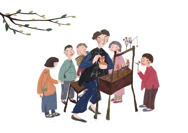 他语气平淡,呼出的热气与历史的云烟相融,像在直面那义薄云天的将军。压子飞旋,好似大师泼墨,自有酣畅淋漓的笔走龙蛇;压子细刻,又如锦绣巧织,成了蝴蝶似的银针。仅仅几下,真真是画龙点睛,一下子双目炯炯,关羽有了真神。手中功夫精细,泥人赵两手却稳稳当当,是胸有成竹。冬天的日光格外泛金,为他渡上绒绒的花边,泥人赵和关云长仿佛重叠在了一起。