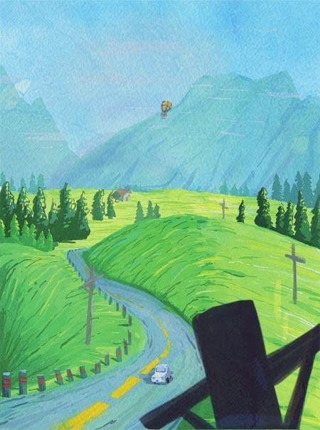 再远一些,出小镇,有二级公路。村里也有人去参与修建过,有工钱拿,大家自然会乐意些。那条路直至我去县城上中学才看清了它的全貌。一路上,全是转弯,好像这条路在山林间不适应,需要弯着身子躺下来,才能舒坦些。老旧的城乡客车在弯曲的公路上呜咽着前行,太多的峭壁夹着这条路,车窗外被疲倦的岩石占据,使我很长一段时间的记忆都是灰白色的。