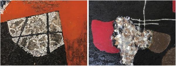 本版综合材料作品,是对传统漆艺的当代创新转化与艺术表达。从表层视觉与材质搭配来看,天然大漆与各类纤维堪称绝佳搭档,两种材料特质截然不同却相辅相成:纤维依托大漆的固化特性稳定成型,摆脱松散形态;大漆则借助纤维的独特质感,打破单一平整感,凸显层次丰富的立体肌理,二者相互烘托、视觉互补,碰撞出极具冲击力的艺术张力。从深层内涵来讲,作品隐喻人类与未知事物的共生关系,彼此依托、相伴成长,未知世界赋予人类不断探索的动力,而人类的探索实践,也让未知事物拥有了被认知、被解读的独特意义。