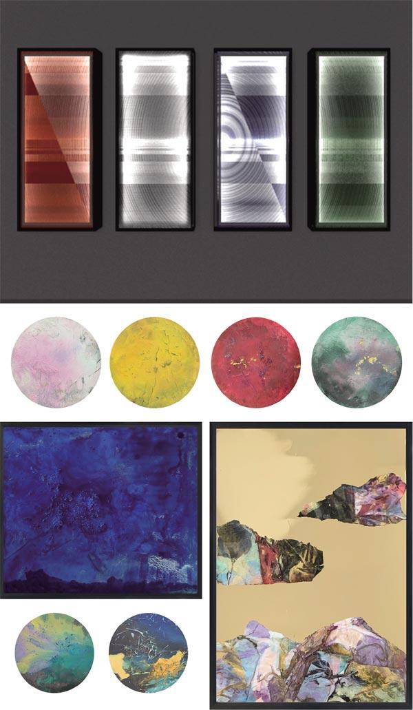 本版作品体现两者的结合,均突破传统艺术媒介束缚,前者依托绘画基底融合材料,后者以空间为载体构建整体艺术场域。