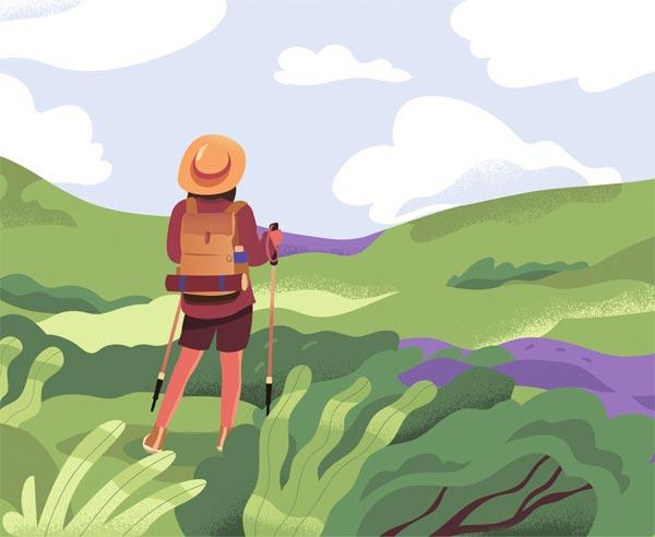 半山腰上,离山下远,离山顶也远。时间一点点推移,手环上显示的步数越积越多。坡度虽缓,可向上走终究费力,起先感觉轻,往后开始腰酸腿疼,一步沉似一步,到了最后注意力都在两条灌了铅的腿上,无暇顾及周围世界,于是干脆什么都不想,听着自己粗重的喘息声,凭惯性任脚下无意识地一步步往前迈着。